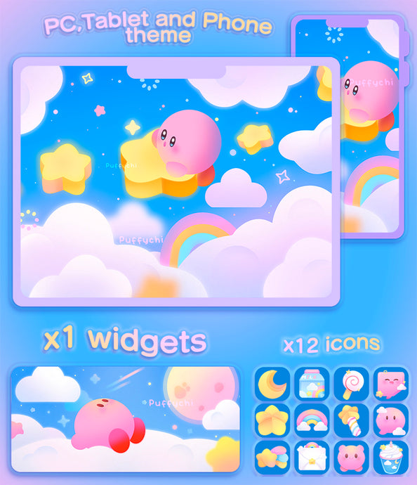 Cottagecore Kirby ♡ Phone and Tablet wallpapers + Widget + Icons